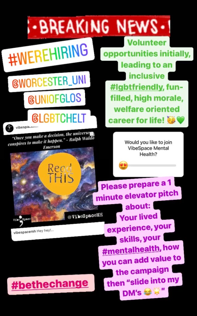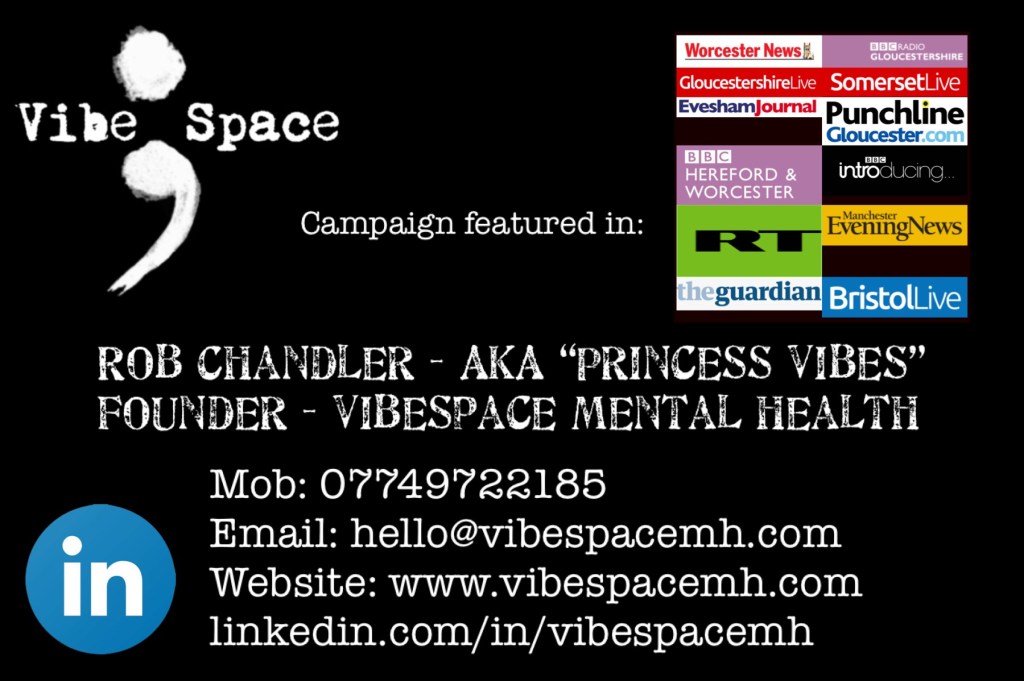 I’ve got people behind the scenes offering me accounting support, filming, street campaigner costume design but VibeSpace Mental Health also needs: