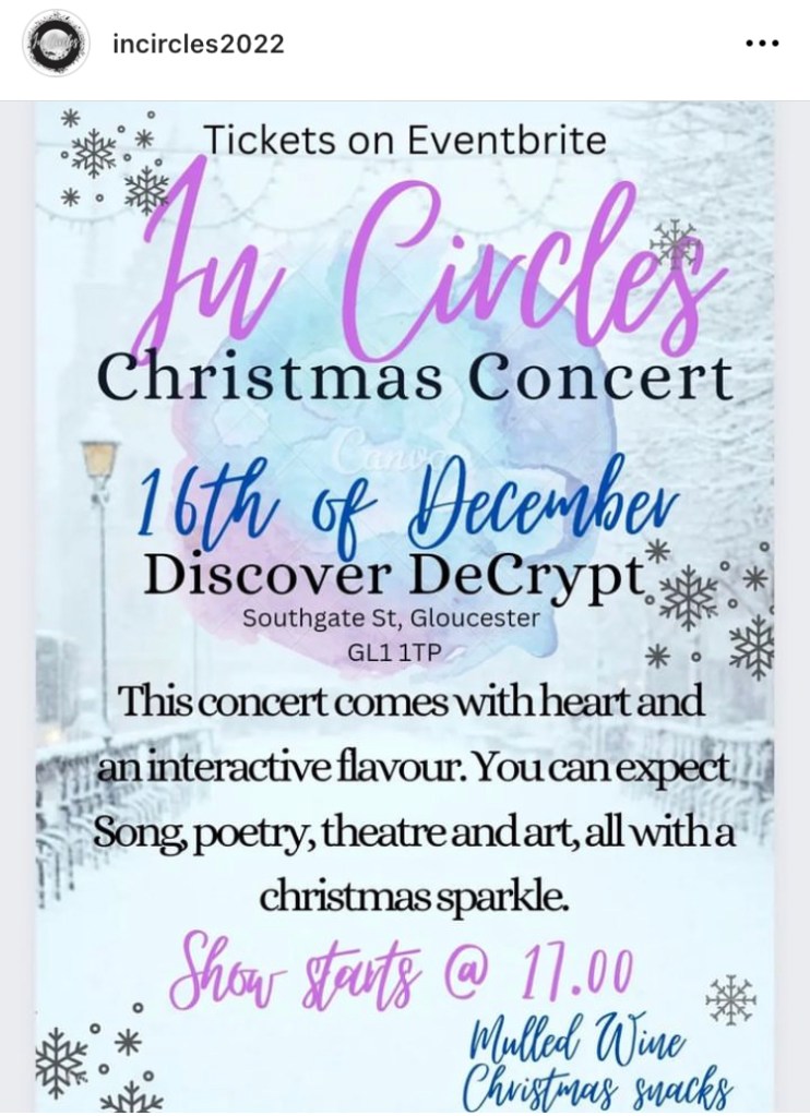 So I decided to go back for round 2 & perform again! I’m so pleased I did, it was such a wonderful experience & has potentially opened the door for further collaboration with both the InCircles team & the event promoters at “Discover DeCrypt” at the St. Mary’s DeCrypt Church on Southgate Street in Gloucester! Here was the Insta story I shared of the finale